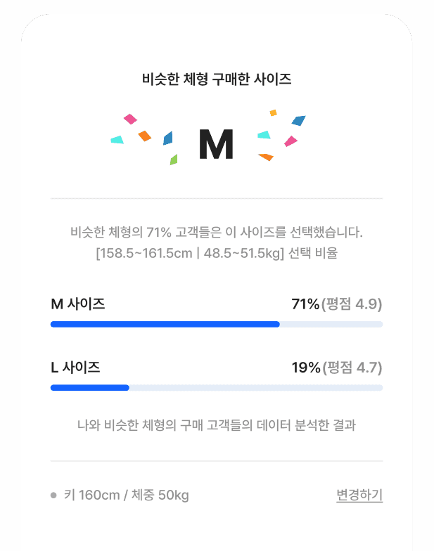 고객에게 딱 맞는 사이즈를 추천할 수 있습니다.
