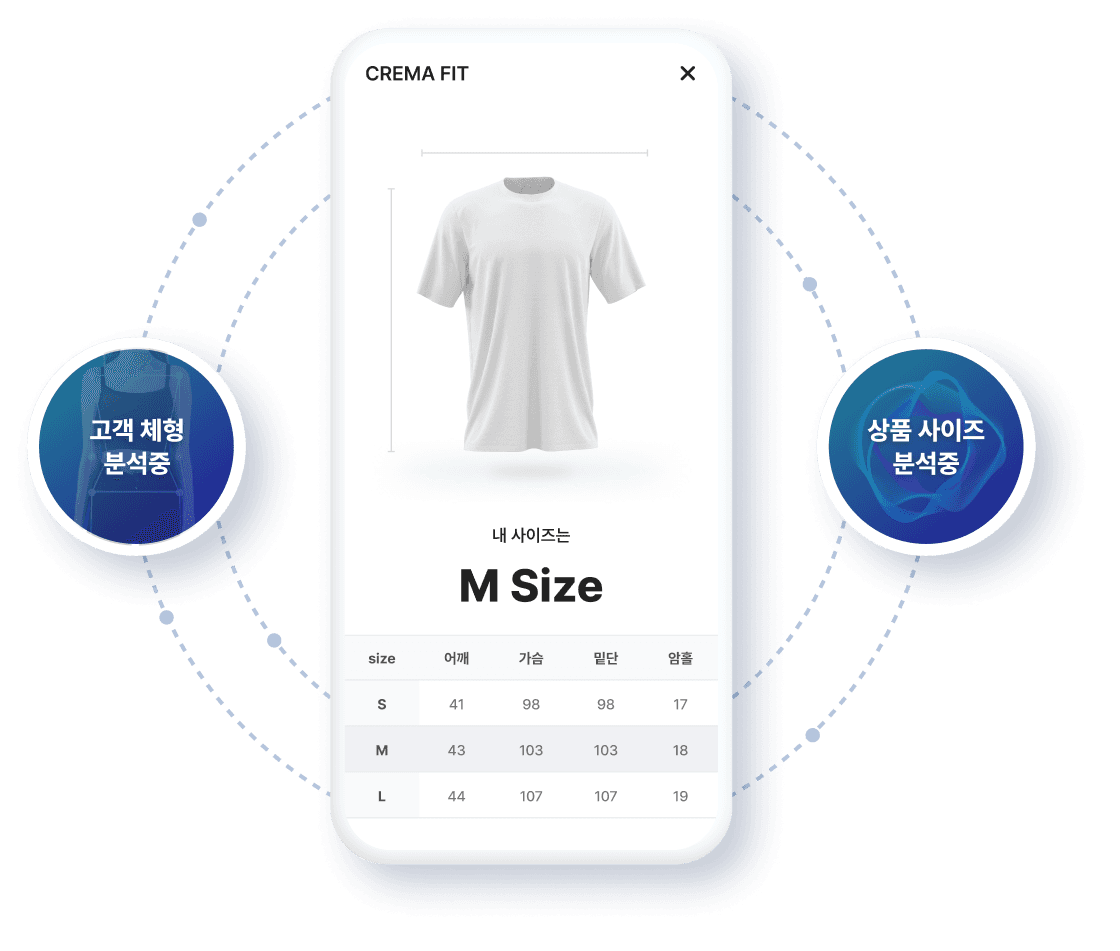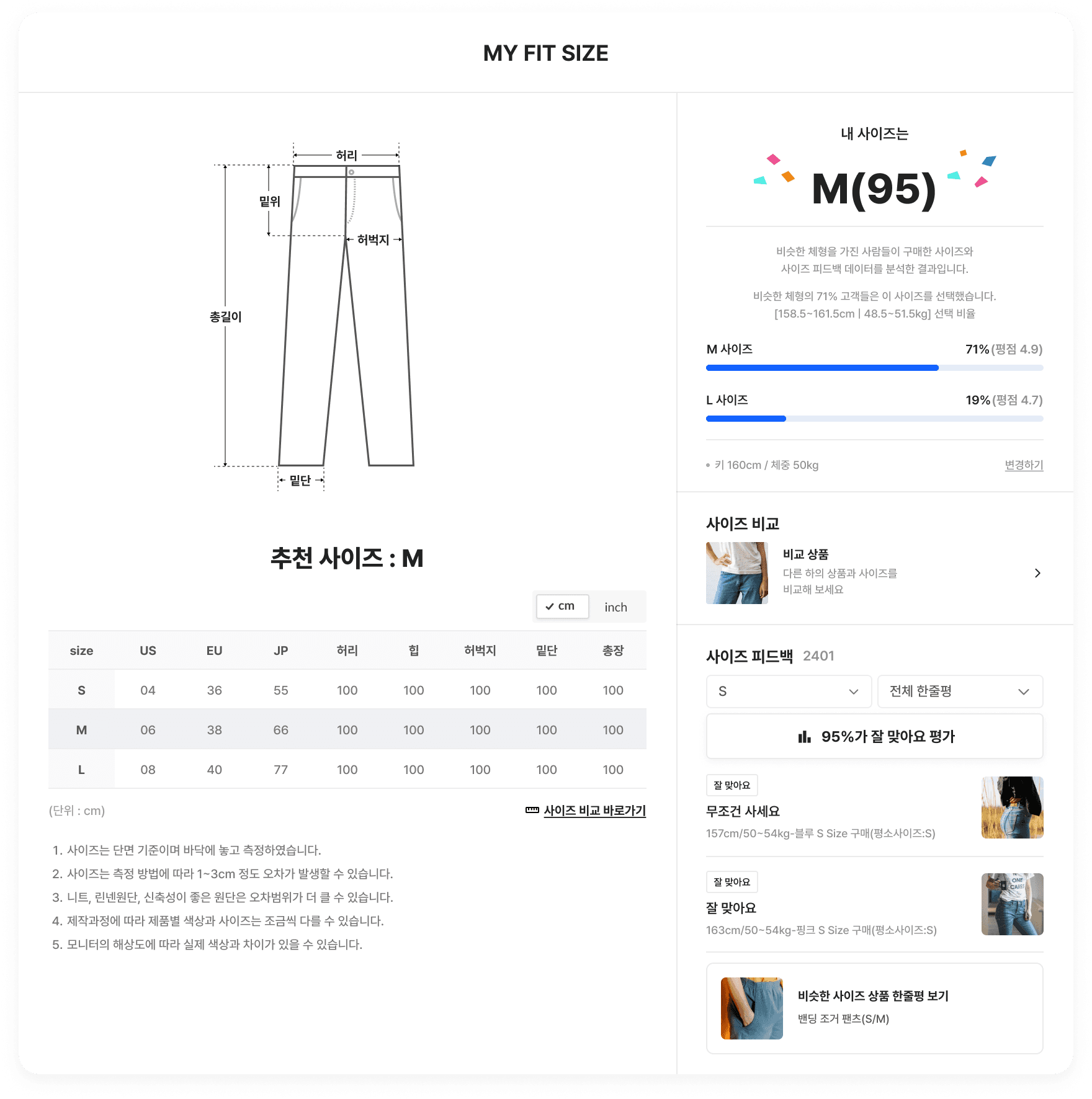 빅데이터 기반의 사이즈 정보 제공으로 고객의 고민을 해결합니다.