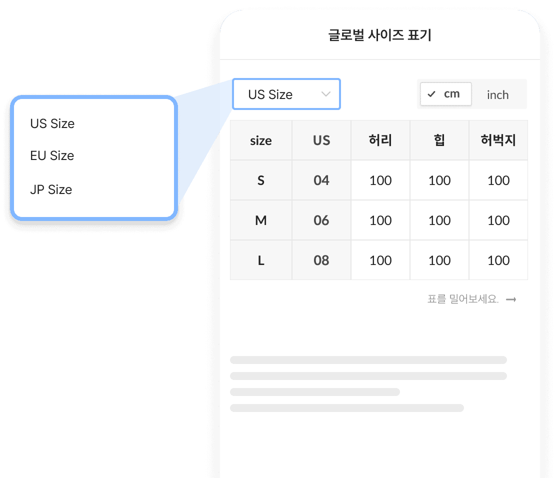 US/EU/JP 등 원하는 국가의 사이즈 표기를