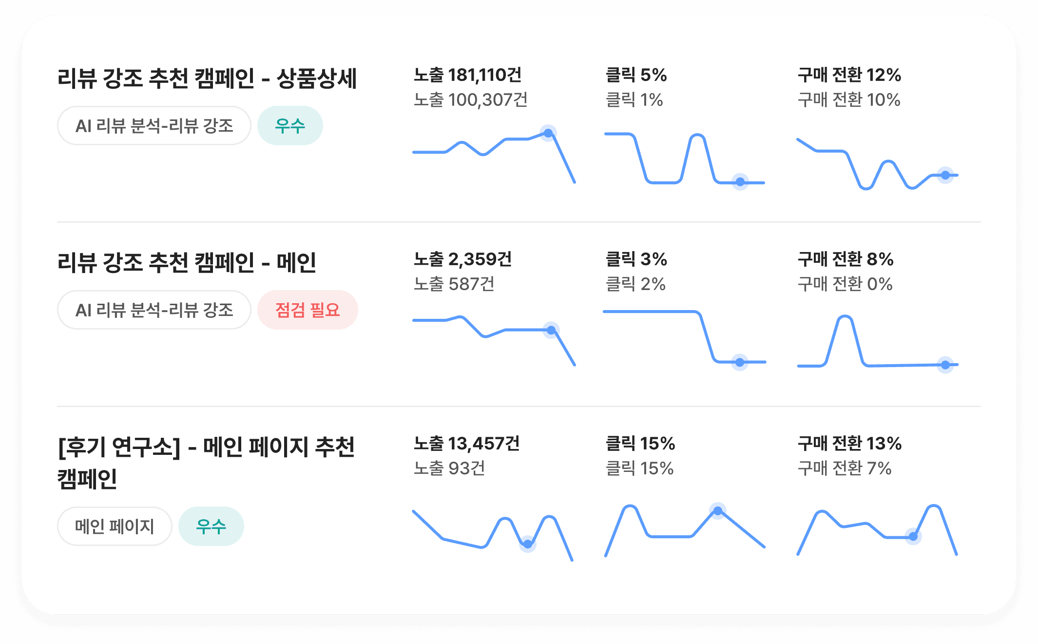 대시보드를 통해 노출, 클릭, 구매 전환율을